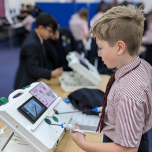 Our kit can usually be set up within 5minutes, so once we’re in we can register the pupils and set up to get started.